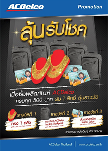 นอกจากการให้ความรู้ แนะนำวิธีใช้งาน และสาธิตการใช้งานผลิตภัณฑ์บางประเภท ลูกค้าที่ซื้อผลิตภัณฑ์ของ ACDelco ในกิจกรรมโรดโชว์ยังได้ลุ้นรับของรางวัลอีกมากมาย ได้แก่ สร้อยคอทองคำ 1 สลึง มูลค่า 5,590 บาท กระเป๋าเป้สะพายหลัง ACDelco และบัตรของขวัญ Tesco Lotus กิจกรรมโรดโชว์จะจัดขึ้นที่ร้านอะไหล่ อู่ซ่อมบำรุงรักษา และสนามแข่งรถที่เป็นที่รู้จักทั่วประเทศ ทั้งหมด 23 แห่งในกรุงเทพฯ ชลบุรี นนทบุรี ปทุมธานี ระยอง เพชรบุรี อยุธยา สระบุรี ฉะเชิงเทรา นครศรีธรรมราช ภูเก็ต และพังงา