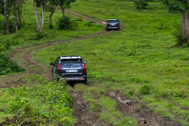 เมื่อถึงอุทยานแห่งชาติแก่งกระจาน ขบวนของสื่อมวลชนเข้าสู่เส้นทางออฟโรดธรรมชาติระยะทาง 9 กม. เพื่อทดสอบระบบขับเคลื่อน 4 ล้อ Super Select 4WD-II โดยตลอดเส้นทางนี้จะมีเจ้าหน้าที่ของอุทยานคอยดูแลความปลอดภัยและความเรียบร้อย โดยเน้นย้ำอีกทีนะครับว่าเส้นทางที่ขบวนมิตซูบิชิ ปาเจโร สปอร์ตใหม่ขับเข้าไปนั้น เป็นกรณีพิเศษจริงๆ เป็นพื้นที่ปิดไม่ให้ท่องเที่ยว ใช้เฉพาะเจ้าหน้าที่เท่านั้น ครั้งนี้จึงเป็นเส้นทางสายพิเศษสุดที่ได้ขับชมป่า เขา สัมผัสธรรมชาติอย่างแท้จริง