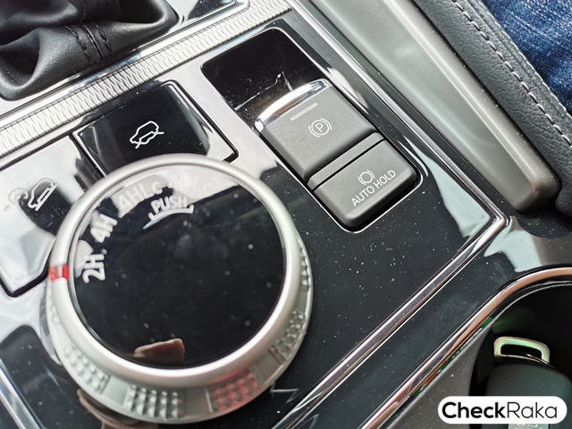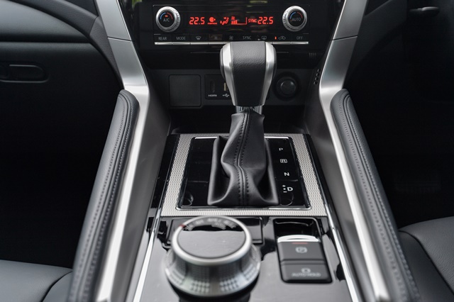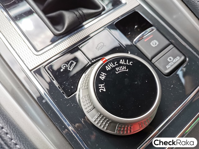 คอนโซลกลางเหมือนจะเหมือนเดิมแต่ไม่เหมือนเดิม! นอกจากชุดเครื่องเสียงที่หน้าตาเปลี่ยนไปแล้ว ชุดควบคุมระบบปรับอากศก็ใหม่อีกด้วย เป็นแบบปุ่มหมุนๆ แยกปรับอิสระซ้ายขวา เพิ่มสวิตช์ควบคุมระบบเปิด-ปิดประตูท้ายไฟฟ้า และไฟฉุกเฉิน นอกจากนี้ตรงฐานเกียร์ยังขยับเลื่อนถอยหลังลงมาและดีไซน์แผงสวิตช์ปุ่มปรับระบบ Super Select 4WD-II และติดตั้งปุ่มควบคุมระบบ "Auto Hold" เพิ่มเข้ามาจากเดิมที่มีแค่สวิตช์เบรกมือไฟฟ้า
