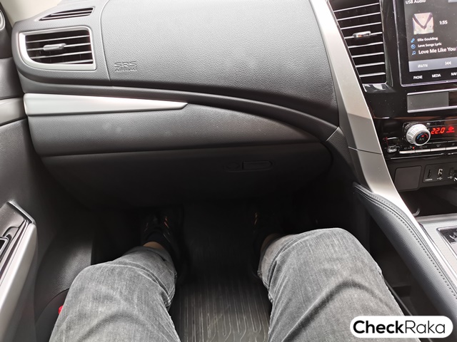 ความกว้างขวางของปาเจโรใหม่ที่อยากจะเล่าให้ฟังว่า ส่วนของที่นั่งตอนหน้าถูกปรับขยับระยะต่างๆ ให้กว้างขึ้น โดยคอนโซลกลางถูกหดให้แคบลงข้างละประมาณ 3 ซม. ฝั่งแผงประตูโดยเฉพาะมือจับนั้นถูกขยับถอยลงมาเล็กน้อยและทำให้ชิดกับแผงประตูมากขึ้นข้างละประมาณ 3 ซม. เช่นกัน ทำให้ฝั่งคนขับนั้นใช้งานสวิตช์กระจกไฟฟ้าได้ง่ายขึ้น ข้อมือไม่ติดอีกต่อไปหลังจากรุ่นก่อนหน้าที่แคบและติดมานาน