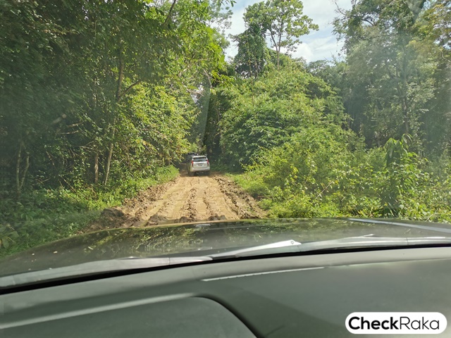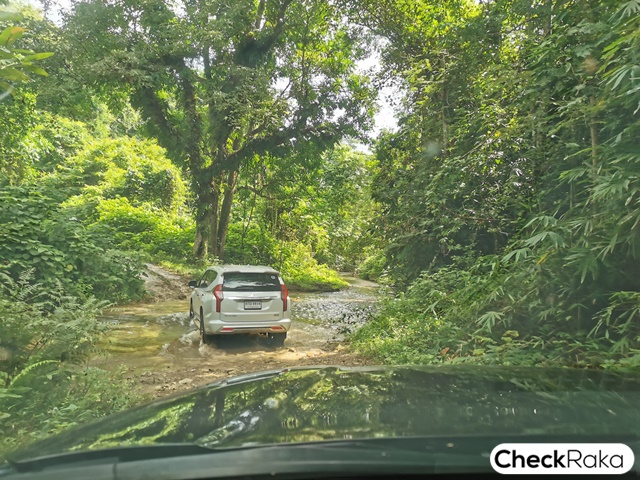 ถนนของเส้นทางที่ขับนั้นเป็นดินโคลนซะส่วนใหญ่ บวกกับฝนตกบ่อยๆ ทำให้ลื่น เละ และแฉะเป็นพิเศษเหมาะกับการใช้ระบบ Super Select 4WD-II ยิ่งนัก การขับเข้าไปนั้นมีการจอดรถเปลี่ยนโหมดการขับขี่เป็น 4HLc และใช้เพียบโหมดเดียวตลอดการขับทดสอบขนออกมา ซึ่งโหมดนี้เป็นสเหมือนโหมด 4L ขับเคลื่อสี่ล้อแบบ Full-Time ของรถขับเคลื่อนสี่ล้อทั่วไป แต่ที่เด็ดกว่านั้นคือ สามารถใช้ความเร็วได้คล้ายกับโหมด 4H แต่มีกำลังในการตะกุยหรือปีนไต่ได้เทียบเท่าโหมด 4L นั่นเอง จึงทำให้ไม่ต้องเปลี่ยนโหมดบ่อย และขับง่ายแม้ไม่มีทักษะใดๆ เลยก็ตาม
