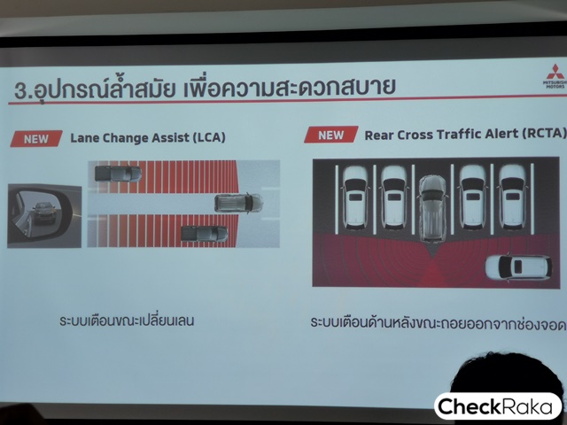 ประตูท้ายไฟฟ้า!!!! มาช้าแต่ชัวร์โดยติดตั้งในรุ่น GT-PREMIUM ขึ้นไป นับเป็นฟีเจอร์ใหม่ที่ให้มาในราคาค่าตัวที่คุ้มมาก โดยฝาท้ายไฟฟ้านี้สามารถใช้ระบบเท้ากวาดหรือ "Hands-Free" แถมยังสั่งตั้งเวลาเปิดได้จากสมาร์ทโฟนโดยผ่าน แอปพลิเคชั่น M-Connect โดยค้นหาคำว่า "MITSUBISHI Remote Control" อีกด้วย เช่น เมื่อเราถือของหนักๆ และกำลังรู้ว่าจะเดินไปที่รถเวลาไหนก็ตั้งเวลารอผ่านแอพฯได้เลย แต่ระบบนี้จะต้องทำงานควบคุมกับกุญแจรีโมท KOS ในระยะไม่เกิน 30-40 ซม. เพื่อความปลอดภัย หากถึงกำหนดเวลาแล้วยังไม่ถึงรถระบบก็ยังไม่เปิดประตูให้ ไม่ต้องกลัวใครจะมาหยิบของในรถก่อนเราจะถึง เซฟๆ เลย