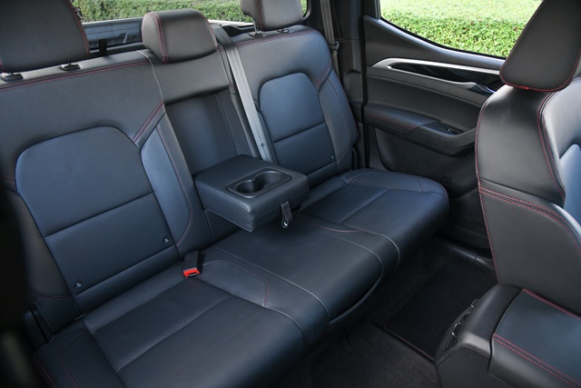 ไฟท้ายดีไซน์สวยดี แต่ว่า! น่าเสียดายที่ยังไม่ใช้ LED ส่วนกันชนท้ายนับว่าออกแบบได้แหวกแนวมาก นอกจากจะมีที่เหยียบไว้ปีนขึ้นตรกลางแล้วยังมีร่องด้านข้างๆ เอาไว้ปีนและติดตั้งทับทิมสะท้อนแสงไว้ด้วย และล้อแม็กสไตล์คุ้นตาที่มองก็รู้ว่า MG แน่นอนขนาด 18 นิ้ว และยางขนาด 255/60R18 จาก Bridegstone Dueler