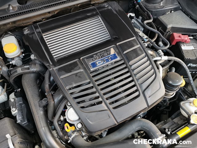 เริ่มที่ขนาดตัวรถยาว 4,690 มม. x กว้าง 1,780 มม. x สูง 1,490 มม. ฐานล้อ 2,665 มม. และน้ำหนักที่มีท้ายแถมมาด้วย 1,605 กก. เครื่องยนต์สำหรับรถพ่อบ้านวัยรุ่นเป็นแบบ FB16 เบนซิน 4 สูบนอน (Boxer) ที่มีจุดศูนย์ถ่วงต่ำ 1,599 ซีซี DOHC 16 วาล์ว AVCS Direct Injection Turbo กำลังสูงสุด 170 แรงม้า (PS) แรงบิดสูงสุด 250 นิวตันเมตร ระบบเกียร์ CVT ระบบขับเคลื่อนสี่ล้อ Full Time (Symmetrical AWD) ความจุถังน้ำมัน 60 ลิตร