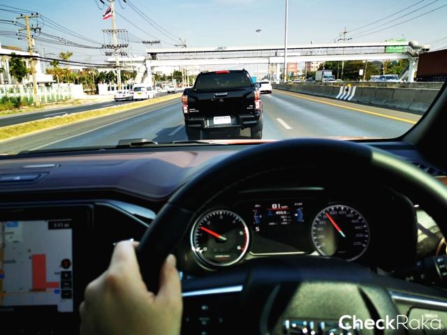 การเดินทางสู่เขาจีนแล จังหวัดลพบุรี ผู้เขียนและทีมงานเริ่มออกในช่วงเช้าจากตัวเมืองชิดลมสู่จุดหมายแรก วัดเวฬุวัน (เขาจีนแล) ที่ตั้งอยู่สุดถนนสายรองที่แยกจากหมายเลข 3017 ผ่านสนามโดดร่มบ้านท่าเดื่อ การขับเดินทางจากกรุงเทพฯ ใช้ถนนพหลโยธินเป็นหลักตรงยาวเข้าสู่สระบุรีผ่านพุทธบาทและเข้าลพบุรี การขับบนถนนเปิดโล่งทำให้ผู้เขียนได้สัมผัสถึงสมรรถนะของเครื่องยนต์ 3.0 ดีดีไอ บลูเพาเวอร์ ที่ตอบสนองได้อย่างดีเยี่ยมตั้งแต่การออกตัว เร่งแซง และในจังหวะที่ต้องชะลอเบาเบรกก็ให้ความรู้สึกตอบกลับที่ดี และมีพลังหยุดที่มั่นใจ ต่างจากบางยี่ห้อที่ต้องเบรกลึก สิ่งที่ผู้เขียนชอบคือ แรงสะท้อนจากช่วงล่างที่ไม่แข็งกระด้างจนเกินไป และวงเลี้ยวที่ทำได้แคบเหนือความคาดหมายเมื่อเที่ยบกับรถกระบะที่มีระบบขับเคลื่อน 4 ล้อด้วยกัน