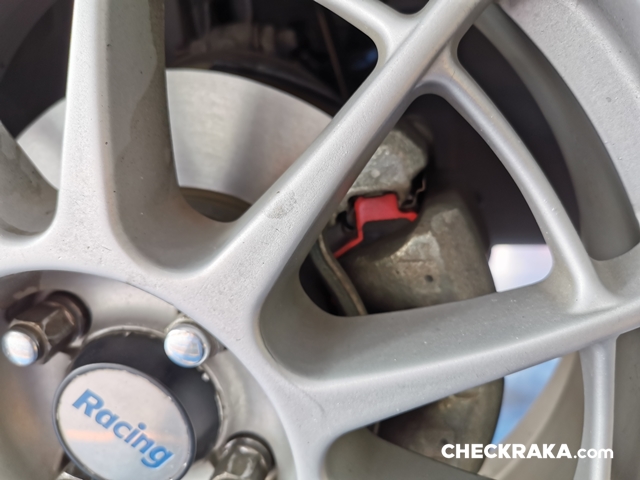 เห็นเค้าไหม สีแดง ๆ นั่นคือผ้าเบรคไง