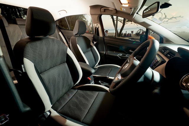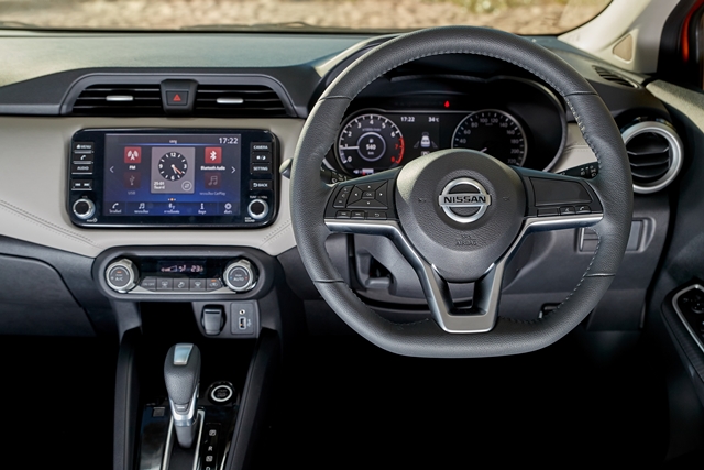 ภายในคงความกว้างขวางสะดวกสบาย เบาะผ้าสีทูโทนนวมแน่นๆ กระชับมากกว่ารุ่นเดิม สุดล้ำกับหน้าปัดแบบใหม่ หน้าจออินโฟเทนเมนต์ Nissan Connect พร้อมหน้าจอระบบสัมผัสขนาด 8 นิ้ว แบบ AIVI ระบบนำทาง ระบบความปลอดภัย ระบบรักษาความปลอดภัยและอื่นๆ ภายใต้แพลตฟอร์มเดียวด้วยการเชื่อมต่อที่ราบรื่นผ่านสมาร์ทโฟน
