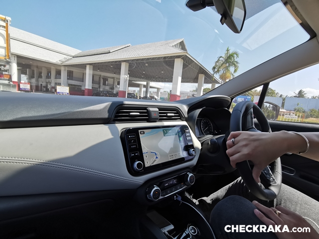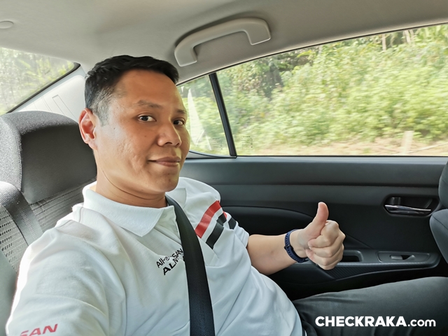 ในการทดสอบขับทริปนี้จะถูกแบ่งกันขับรถนิสสัน อัลเมร่า 1 คัน ต่อ ผู้ทดสอบ 2 คน สลับกันขับตามจุดที่กำหนดให้ ทีมงานเช็คราคาได้ขับรวมระยะทางประมาณ 120 กม. ผ่านเส้นทางในเขตตัวเมืองเล็กน้อยและลัดเลาะไปตามเนินเขา ทางชันและโค้งมากมาย จึงได้รู้ถึงสมรรถนะหลายรูปแบบในครั้งนี้ เมื่อออกตัวแตะคันเร่งเครื่องยนต์ 3 สูบ ตอบสนองได้ไว้กว่าที่คิด และใช้คันเร่งเพียง 40 - 50 เปอร์เซ็นต์ ในเวลาไม่นานนักก็ไต่ระดับความเร็วไปที่ 120++ กิโลเมตรต่อชั่วโมง แบบชิว ด้วยความที่รถมีน้ำหนักตัวเบาเพียง 1,076 กิโลกรัม ทำให้แรงบิด 152 นิวตันเมตร ลากตัวถังวิ่งทะลุ 100 กิโลเมตรต่อชั่วโมงแบบง่ายๆ เลย