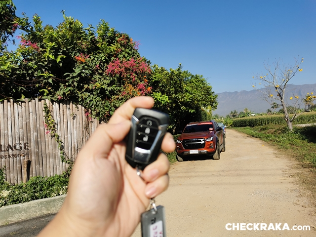 เมื่อต้องการเข้ารถโดยการกด "ปลดล็อค" เครื่องยนต์จะดับทันที ซึ่งเป็นการตั้งค่าเพื่อความปลอดภัยป้องกันการถูกโจรกรรมนั่นเอง หลังจากนั้นก็เพียงขึ้นรถเหยียบเบรกและกดปุ่นสตาร์ทเครื่องยนต์อีกครั้ง สำหรับ All-new Isuzu D-Max V-Cross 3.0 Ddi M 4X4 เกียร์อัตโนมัติ ราคา 1,164,000 บาท