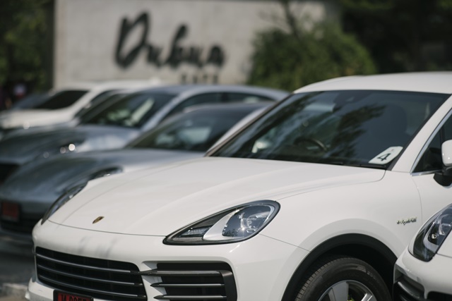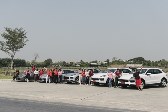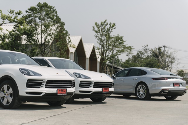 ก่อนออกเดินทางช่วงเช้า ทีม PR สาวจากปอร์เช่ นัดเจอและบีฟเส้นทางกันก่อนที่ ศูนย์บริการ Porsche Centre Bangkok พร้อมจัดกลุ่มและเลือกพาหนะพาซิ่ง ซึ่งก็มีรถปอร์เช่รุ่นเด่นให้ได้ทดสอบและขับขี่กันอย่างเต็มอิ่มถึง 4 รุ่น ได้แก่ คาเยนน์ อี-ไฮบริด (Cayenne E-Hybrid), มาคันน์ (Macan), พานาเมร่า 4 อี-ไฮบริด (Panamera 4 E-Hybrid) และ 718 บ็อกซเตอร์ (718 Boxster) และผู้เขียนก็จับฉลากได้คู่หูผู้น่ารักคนเดิม "คุณแหม่ม" เจ้าของรายการ Motor running และรถที่เราจับฉลากได้คือ Cayenne E-Hybrid (คาเยนน์ อี-ไฮบริด) รถ SUV คันใหญ่ สไตล์แฟมิลี ราคาแค่ 6.3 ล้านบาท เท่านั้น!!