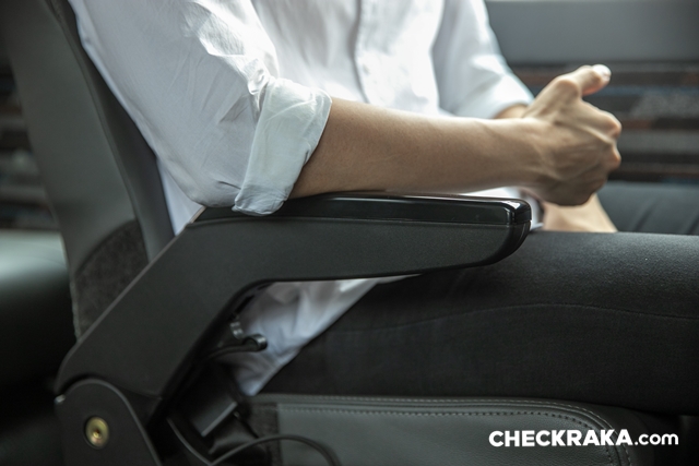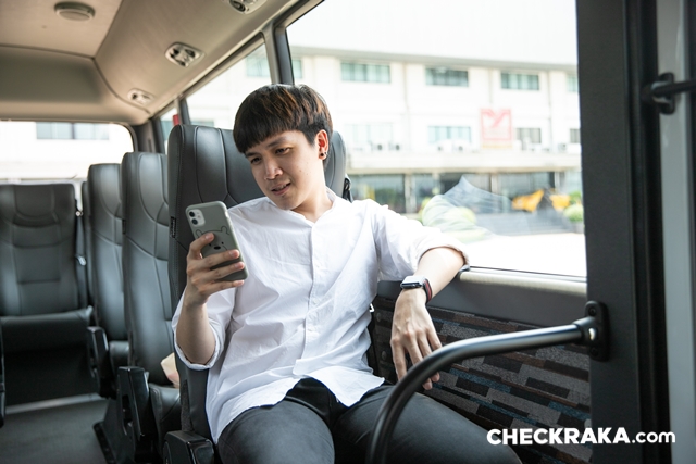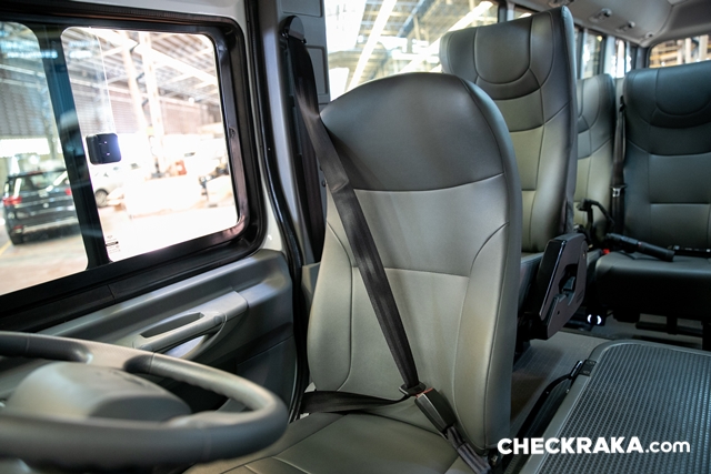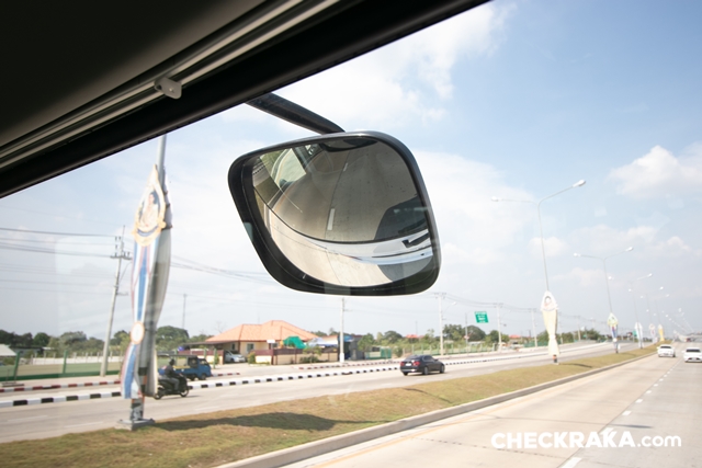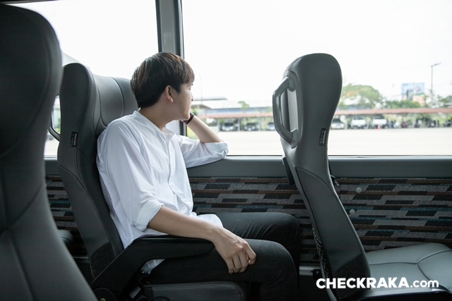 มาถึงมุมของผู้โดยสารกันบ้าง บอกเลยเบาะนุ่มมาก เป็นแบบหุ้มหนังนั่งสบาย เสียดายที่มีความกว้างของตัวเบาะเป็นไปตามมาตรฐานรถขนส่งทั่วไป จึงแคบไปนิดเมื่อต้องนั่งแบบ 2 ที่นั่ง พนักพิงหลังถูกล็อคไว้ปรับเอนไม่ได้เพราะเป็นรถที่เน้นใช้งานขนส่งสาธารณะไม่เกิน 24 ที่นั่ง แต่ด้วยตัวเบาะที่นุ่มและที่พิงศีษระมีปีก (คล้ายมิกกี้เมาส์) จึงรองรับได้ค่อยข้างดี นอกจากนี้ยังมีช่องจ่ายไฟ USB ให้ทุกเบาะ ไฟอ่านหนังสือ ที่ท้าวแขน ที่วางเท้า และเข็มขัดนิรภัยครบ