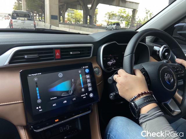สำหรับ New MG ZS รุ่น X+ ที่เราได้ทดลองขับ มีระบบ Cruise Control ที่ปลายก้านซ้ายล่างไฟเลี้ยว (รุ่นนี้ไฟเลี้ยวยังอยู่ซ้ายมือ ขวาที่ปัดน้ำฝน) โดยการตั้งค่าง่ายๆ พลักก้านเข้าหาเรา เซทจากความเร็วที่เราขับใน ขณะนั้น และกด Set ที่ปุ่มปลายก้าน เป็นอันเสร็จ เร่งความเร็วเพิ่มรถจะยังไม่คลาย แต่ถ้าแตะเบรค ระบบจะกลับมาเป็นการขับขี่แบบปกติ