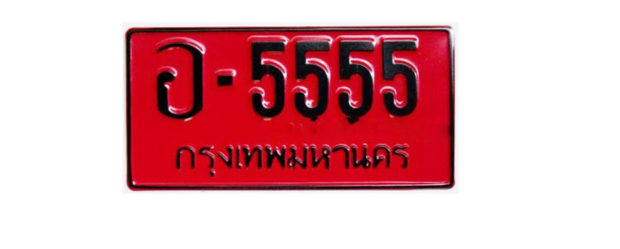 4. ป้ายทะเบียนรถพื้นสีเหลืองสะท้องแสง ตัวหนังสือแดง