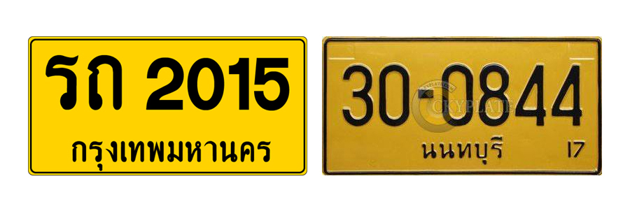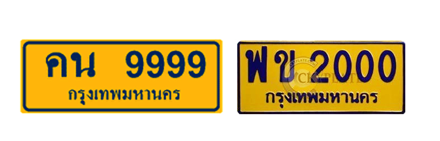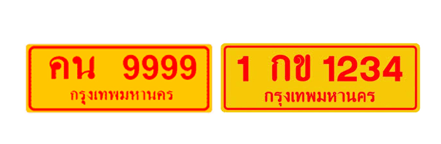 สำหรับป้ายทะเบียนรถสีเหลืองสะท้อนแสง ตัวอักษรน้ำเงินเป็นป้ายใช้สำหรับรถ 4 ล้อเล็กรับจ้าง