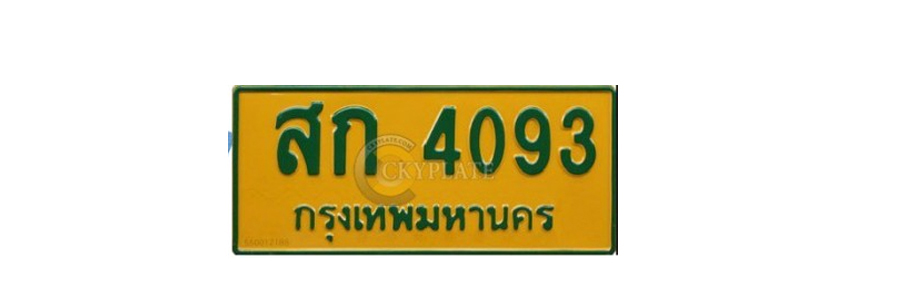 6. ป้ายทะเบียนรถสีเหลืองสะท้อนแสง ตัวอักษรสีเขียว