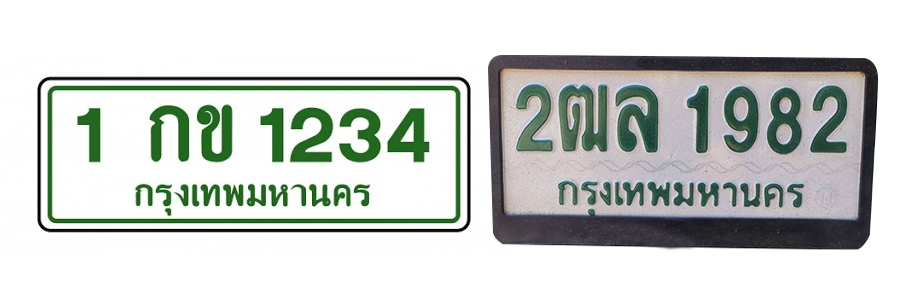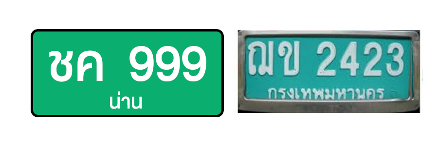 1. ป้ายทะเบียนพื้นขาวตัวหนังสือเขียว