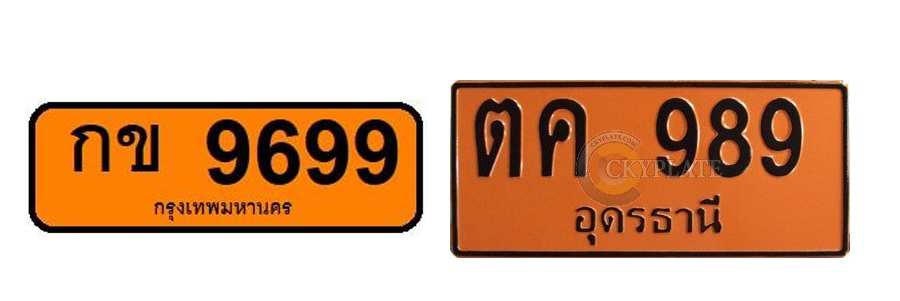 8. ป้ายทะเบียนรถสีส้มสะท้อนแสง ตัวอักษรใช้ดำ