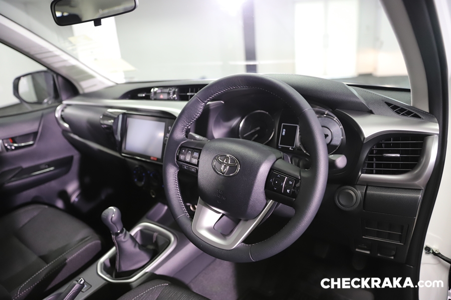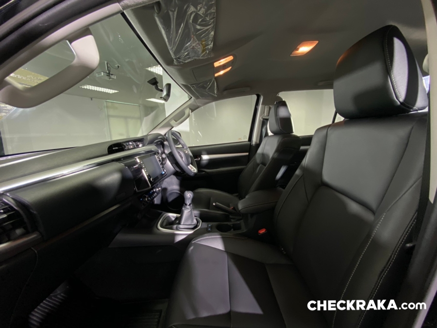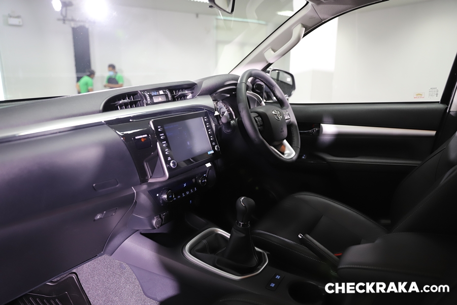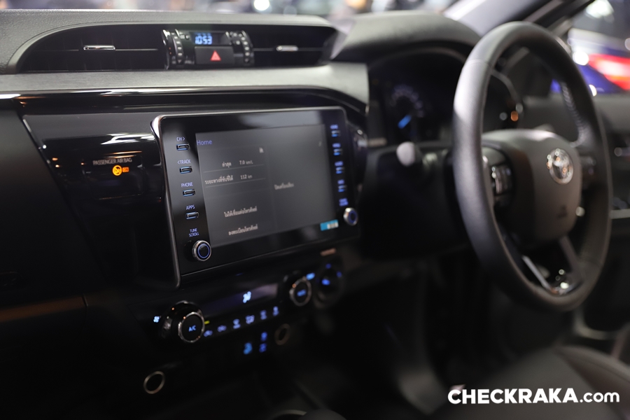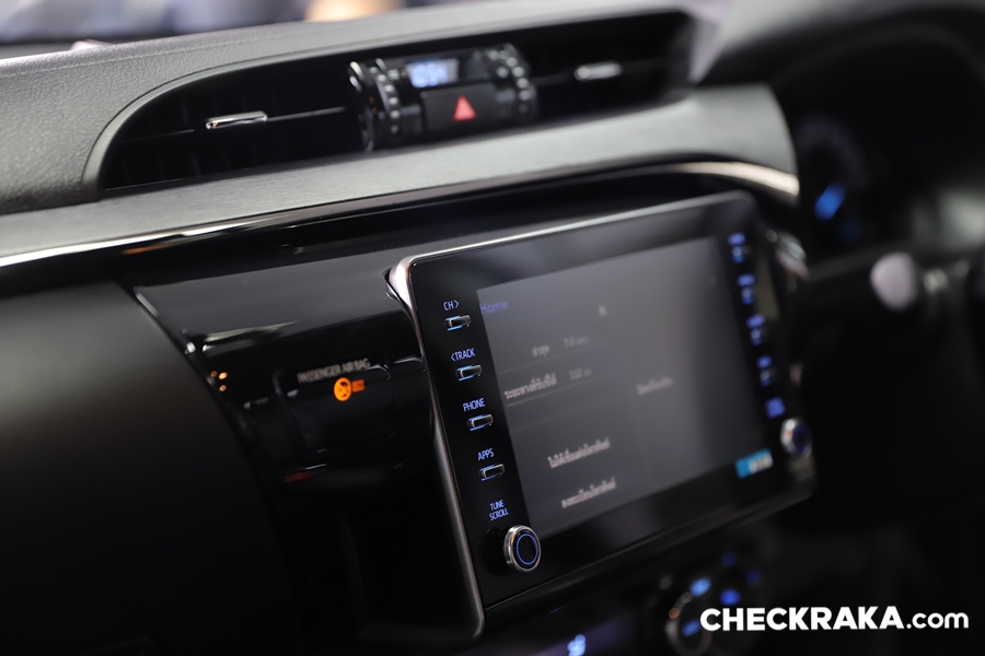 ภายในไฮลักซ์ รีโว่ใหม่ ปรับเปลี่ยนไม่มากนัก แต่ยังมีจุดที่พอสังเกตุได้ คือ โทนสีที่ใช้ในแต่ละรุ่นย่อย และสีสันของมารตวัดที่สวยสดใสมากขึ้น ส่วนระบบความบันเทิงนั้นให้จอสัมผัสขนาด 8 นิ้ว พร้อมรองรับ Apple CarPlay และระบบ T-Connect ทุกรุ่นย่อย! ตั้งรุ่นหัวเดี่ยวไม่มีกระบะจนรุ่นพิเศษ Rocco แต่แตกต่างกันที่ระบบการใช้งานนั่นคือ ใน Rocco และ Pre-runner หน้าจอสัมผัสขนาด 8 นิ้ว แบบ Capacitive รองรับระบบ Apple CarPlay ส่วนในรุ่นรองลงมาเป็นหน้าจอสัมผัสขนาด 8 นิ้ว แบบ Resistive รองรับระบบ Apple CarPlay