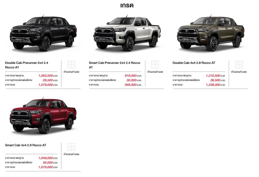 New Toyota Hilux Revo Rocco มี 4 รุ่น ราคา 949,000 - 1,239,000 บาท