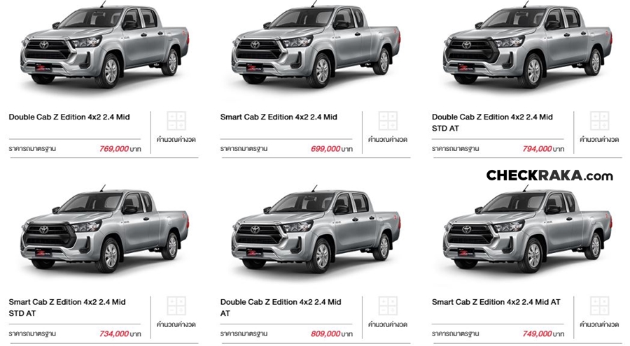New Toyota Hilux Revo Z-Edition มี 12 รุ่น ราคา 609,000 - 809,000 บาท