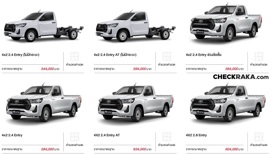 New Toyota Hilux Revo รุ่นมาตรฐาน มี 7 รุ่น ราคา 544,000 - 704,000 บาท
