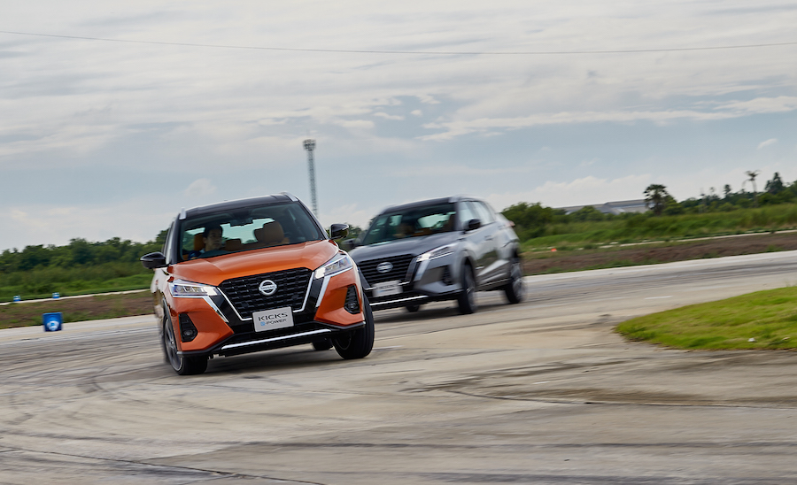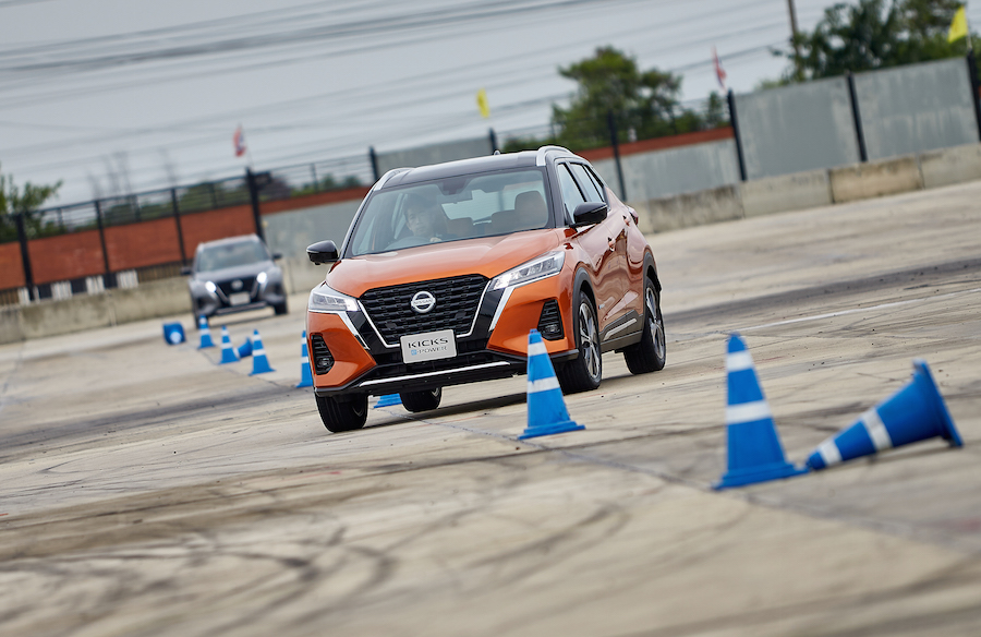 สำหรับการทดสอบครั้งนี้ นิสสันให้สื่อแต่ละสำนักทดลองขับกันในสนาม 1 คนต่อ 1 คัน แบบจุใจ โดยสนามแบ่งเป็น 2 การทดสอบ โดยสนาม A จะทดสอบมสรรถนะและการใช้เกียร์ ส่วนสนาม B จะทดสอบการโค้ง การเบรค ทดสอบอัตราเร่งและควบคุมรถ ซึ่ง นิสสัน คิกส์ มีจุดเด่นที่พลาดไม่ได้คือ มีโหมดการขับขี่ให้เลือกกัน 4 โหมดคือ EV Mode S Mode Eco Mode และ Normal และจุดเด่นของ SUV คันนี้ก็ที่มีอีกก็คือ ระบบ One Pedal (วัน - เพดัล) ที่ช่วยให้การขับสนุกและสบายมากขึ้น ยิ่งถ้ารถติดบอกเลยว่าระบบนี้จะทำให้คุณฟินและไม่เมื่อยแน่นอน เพราะระบบนี้เมื่อเราเปลี่ยนใช้โหมด S ระบบจะหน่วงจนรู้สึกได้ทันที เวลาขับก็แตะเพียงคันเร่งส่วนตอนเบรคก็ยกเท้าออกจากคันเร่งแล้วให้ระบบ One Pedal ทำหน้าที่ โดยที่เท้าเราไม่ต้องแตะเบรค เพราะรถจะชะลอตัว จนหยุดให้เราโดยอัติโนมัติ แต่ถ้ามาด้วยความเร็ว 80 - 100 หรือหากฉุกเฉิน ก็ต้องแตะเบรคไว้สักนิดเพื่อความปลอดภัย
