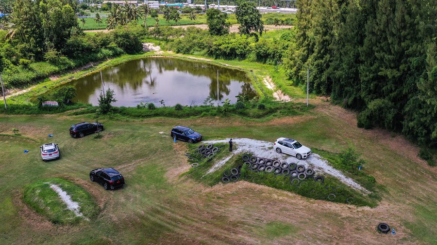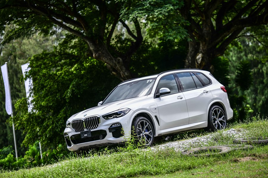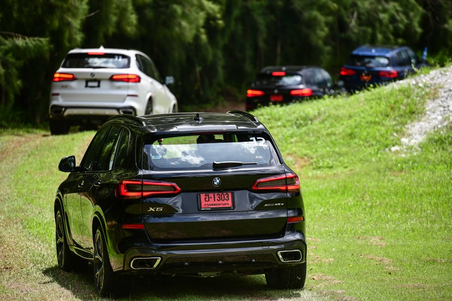 เมื่อถึงเอนดูโร่พาร์ค ก็สลับลงไปขับทดสอบ บีเอ็มดับเบิลยู X5 xDrive45e M Sport (4,999,000 บาท) ต่อเนื่อง โดยเน้นให้เห็นสมรรถนะที่ไปได้มากกว่าออนโร้ด เริ่มจากการขับทดสอบและทำความคุ้นเคยกับระบบช่วยเหลือต่างๆ ตามเส้นทางและสเตชั่นที่กำหนดไว้ในสนามฯ เช่น การเบรกกระทันหันบนทางกรวด, การใช้กล้องหน้าช่วยในการดูเส้นทางไต่ทางลาดชัน, ระบบช่วยลงบนทางลาดชัน, การปรับค่าความสูงของตัวรถ ซึ่งปรับไว้สูงสุด พร้อมกับเลือกปรับโหมดใหม่เป็น adaptive ซึ่งนับเป็นมาตรฐานใหม่ที่น่าประทับใจเพราะกล่องควบคุมสามารถวิเคราะห์เลือกโหมดที่เหมาะและค่าต่างๆ ให้เหมาะสมกับสไตล์และสถานการณ์จริงของผู้ขับมากที่สุด ซึ่งมักแตกต่างกันอยู่ตลอดเวลา