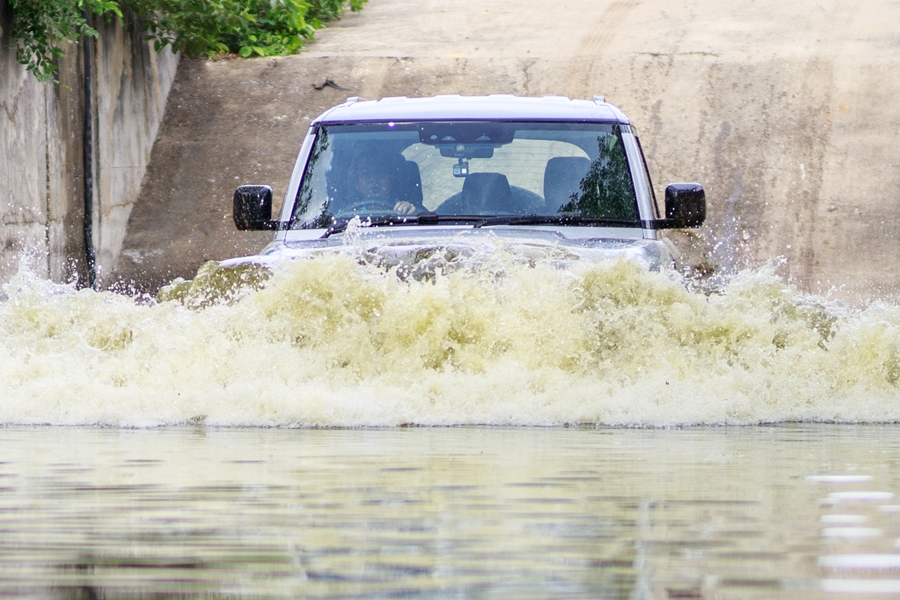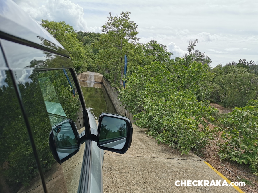 ไฮไลท์ของการลุยครั้งนี้ก็คือ การดำน้ำลึกกว่า 60 ซม. (ซึ่งตามสเปคระบุไว้ว่าลุยได้ถึง 90 ซม.) การทดสอบจุดนี้ต้องมีการเผื่อเอาไว้เพื่อความปลอดภัยเพราะอาจมีช่วงที่พื้นดินไม่เท่ากันได้ การลุยน้ำระดับนี้ ยกตัวถังรถให้สูงสุด และแค่กดเปิดระบบ Wading2 (โหมดลุยน้ำ) โหมดนี้จะช่วยควบคุมความเร็วให้คงที่ (เริ่มตั้งแต่ 5 กิโลเมตรต่อชั่วโมงขึ้นไป) เมื่อตั้งระบบเสร็จแล้วก็หย่อนหัวลงน้ำได้เลยโดยให้เปิดระบบ Hill Descent Control (HDC) ช่วยอีกแรงถ้าทางลงมีความชันมาก ๆ