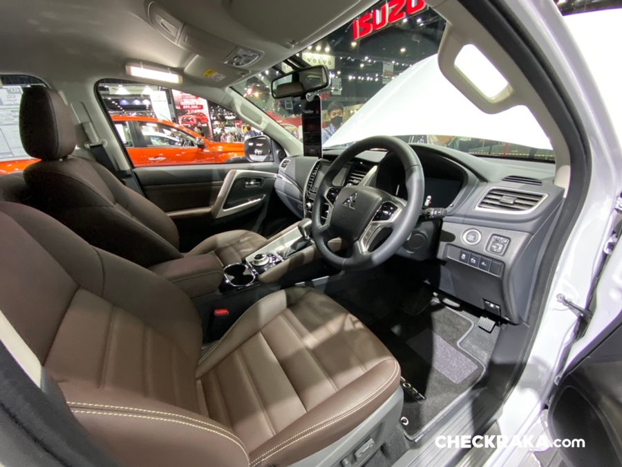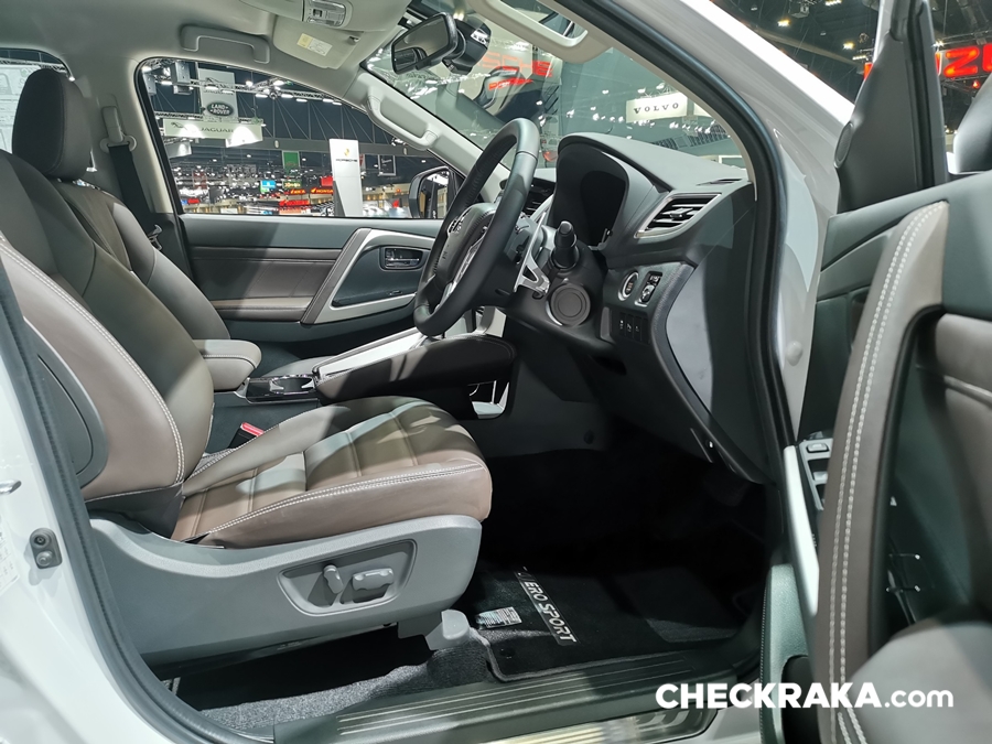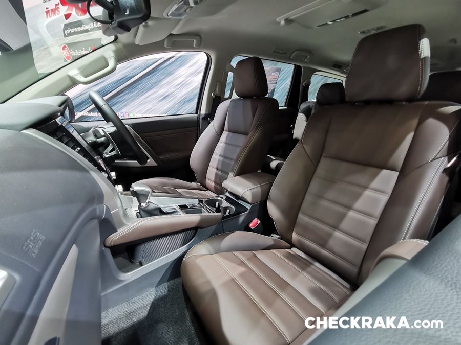 ภายในห้องโดยสารของ มิตซูบิชิ ปาเจโร สปอร์ต อีลีท เอดิชั่น ใหม่ ยกระดับความหรูหราและความสะดวกสบายด้วยเบาะนั่งสีน้ำตาลวัสดุ QUOLE MODURE (โควเล่ โมดูเร่) มีคุณสมบัติพิเศษช่วยสะท้อนความร้อนจากแสงแดด ผิวสัมผัสไม่ร้อนแม้จอดรถกลางแดดเป็นเวลานาน ให้ความสบายตลอดการเดินทาง
