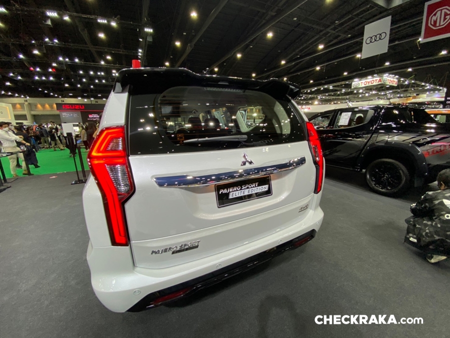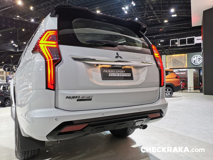 พร้อมอุปกรณ์ตกแต่งมาตรฐาน ได้แก่ กระจังหน้ารถสีดำ ตกแต่งด้วยโลโก้ PAJERO SPORT บนฝากระโปรงหน้า และโลโก้ ELITE EDITION ที่ฝาประตูท้าย พร้อมปลายท่อไอเสียสเตนเลส ทั้งนี้ยังติดตั้งอุปกรณ์ตกแต่งสีดำทั้งหมด ได้แก่ ไฟหน้าโปรเจคเตอร์ ล้ออัลลอยขนาด 18 นิ้ว ชุดตกแต่งใต้กันชนหน้า-หลัง ราวหลังคา สปอยเลอร์หลัง และ เสาอากาศแบบครีบฉลาม