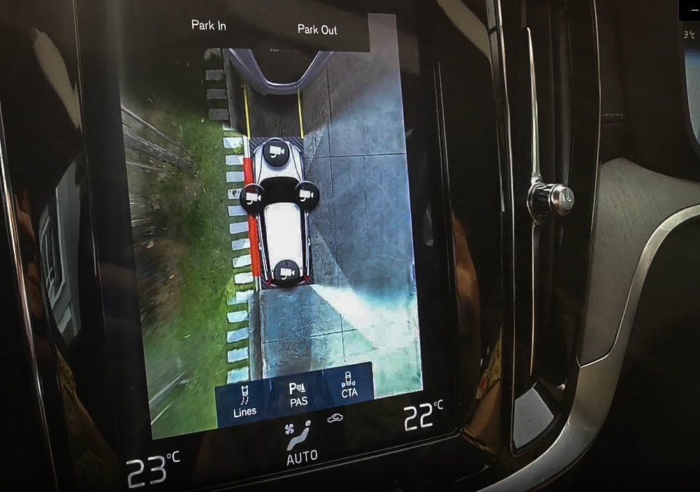 ระบบช่วยจอดมีทั้งแบบจอดขนานและถอยเข้าช่องจอด ซึ่งได้ทดลองแล้วนับว่าจอดให้อย่าง "เนี๊ยบ" มาก โดยเลือกกดปุ่มช่วยจอดบนจอกลาง ระบบจะบอกขั้นตอนให้ทำตาม เริ่มต้นเมื่อเห็นช่องจอดก็กดปุ่มช่วยจอด เดินหน้าจนกว่าหน้าจอจะเตือนให้หยุดรถ โดยระบบเซ็นเซอร์จะสแกนพื้นที่ว่าจอดพอหรือไม่โดยอัตโนมัติ (หากช่องแคบไปก็จะไม่สามารถทำขั้นตอนต่อไปได้) เข้าเกียร์ถอยปล่อยพวงมาลัย เหลือเพียงควบคุมเบรกเท่านั้น รถก็จะหมุนและกะยะให้เอง ทำตามขั้นตอนจนจบครับ ซึ่งระบบช่วยจอดนี้ทำงานได้ดีเยี่ยมเพราะว่าจอดได้ชิดขอบเกือบเท่ากับตอนสอบใบขับขี่เลยครับ นอกจากนี้ยังสามารถกดเลือกให้ออกจากที่จอดอัตโนมัติอีกด้วย