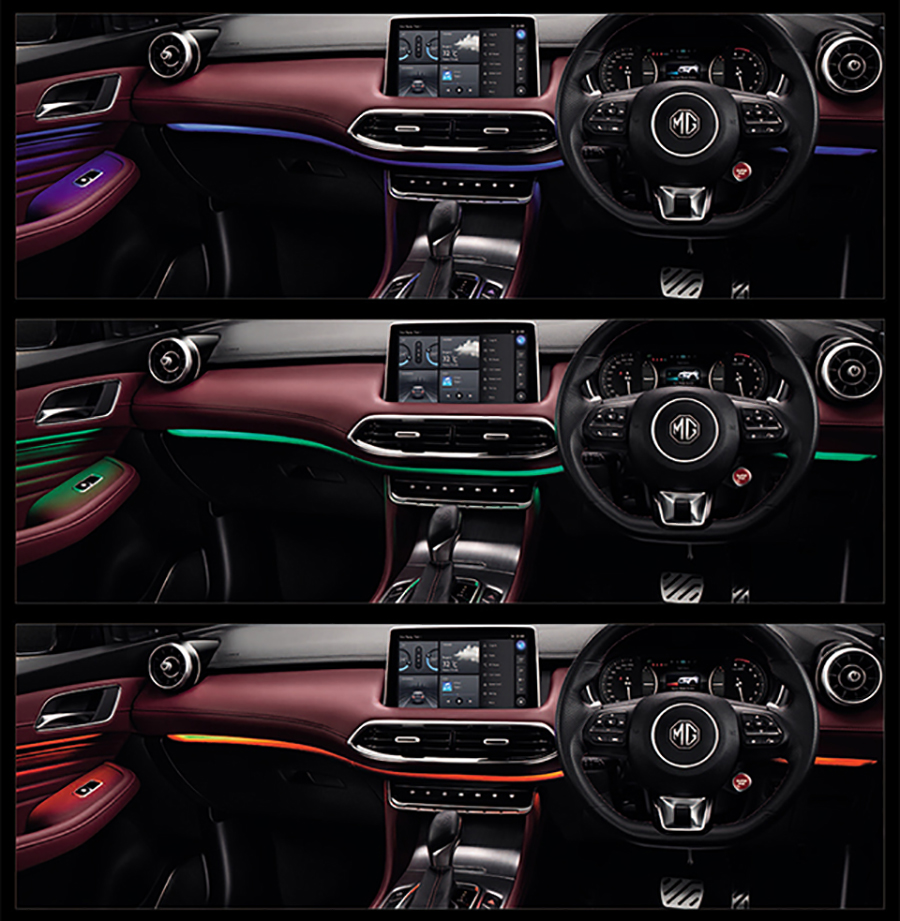 อีก 1 ลูกเล่น ที่ซ่อนในรถให้คามสบายตาหรูหราเฉกเช่นรถยุโรปก็คือไฟในห้องโดยสาร ที่เปลี่ยนสีได้ตามอารมณ์ผู้ขับทั้งสีแดงงแบบสปอร์ต สีเขียว อบอุ่น หรือม่วงก็มีให้เลือก ใครได้เข้ามานั่งก็คงรู้สึกได้ว่านั่งรถหรูแบรนด์ยุโรปอยู่แน่ๆ