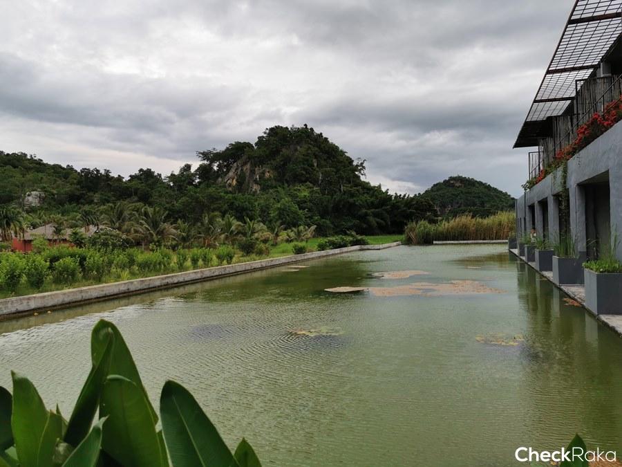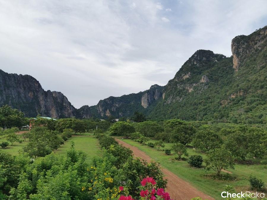หลังจากใช้เวลาชื่นชมถ้ำหุบป่าตาดและป่าดึกดำบรรพ์ด้านในอยู่พักใหญ่ ก็ได้เวลาสมควร ก่อนจะเย็นและวังเวงไปมากกว่านี้ เราออกมาแล้วขับอีูซูซุ ดีแมคซ์ ไปต่อกันที่วัดถ้ำทองที่อยู่ใกล้กันทางขึ้นค่อนข้างลาดชันแต่เทปูนเรียบร้อย แวะไหว้พระนอนในถ้ำ สงบจิตใจกันสักพักก่อนเดินทางไป อวตาร มิราเคิ่ล รีสอร์ต ที่พักของเราชาวคณะเช็คราคา.คอม แต่ก่อนถึงที่พักก็ได้แวะชมฝากั้นน้ำปางสวรรค์ที่อยู่ระหว่างทาง เราเห็นจากในภาพถ่ายในโซเชี่ยลดูสวยงามไม่น้อย แต่เอาจริงๆ การเดินลงไปถ่ายให้ได้ภาพแบบนั้นนับเป็นความยากลำบากอยู่พอสมควร และต้องระวังกับพื้นที่เต็มไปด้วยตะไคร่น้ำที่ลื่นมาก จุดนี้ใช้เวลาเก็บภาพถ่ายกันสักพักจนเริ่มมืด ก็ออกเดินทางไปที่พัก