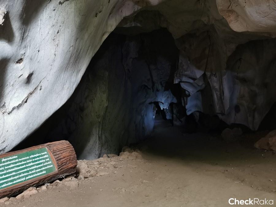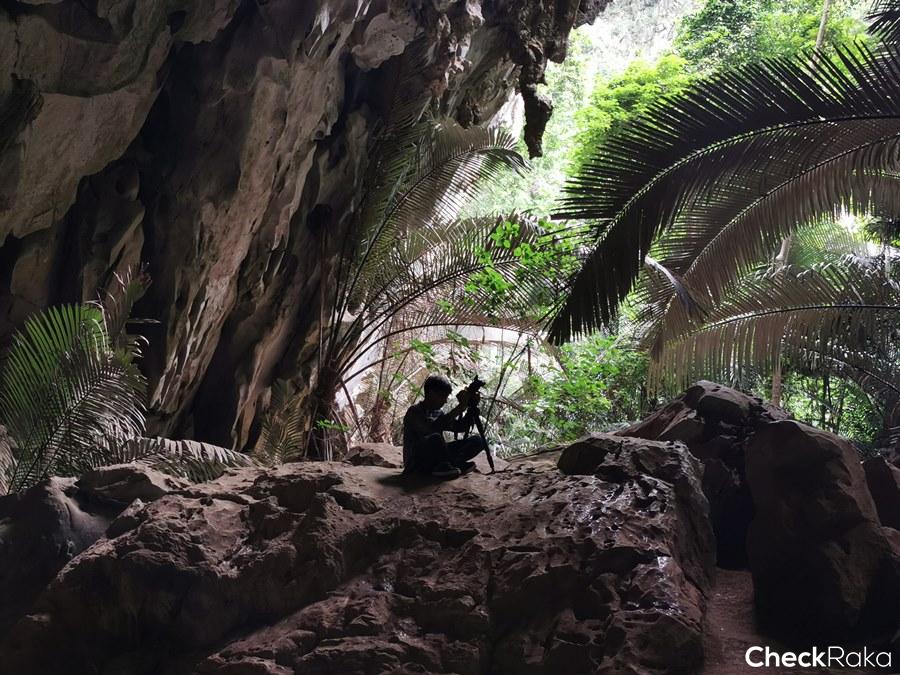 เราติดต่อจ่ายค่าเช้าชม พร้อมได้ยืมไฟฉายจากเจ้าหน้าที่เพื่อใช้ส่องถ้ำ การเดินเข้าถ้ำเหมือนจะชันแต่เดินผ่านแค่ 2 เลี้ยวก็ถึงปากทางเข้าทำ เสียงจากสรรพสัตว์ในป่า ค้างคาวในถ้ำ ทำให้เราชะงักทำใจกันอยู่สักพักก่อนเดินเข้าไป โชคดีที่ช่วงนี้แมสปิดจมูกและปากเป็นอุปกรณ์มาตรฐานที่พกกันตลอด ก็ช่วยทำให้ลดกลิ่นมูลค้างคาวถ้ำไปได้พอสมควร นอกจากนี้เจลแอลกฮอลล์ที่พกมาด้วยก็ช่วยได้ดี เวลาใช้มือจับปืนป่าย การเที่ยวในยุค New Normal กลายเป็นการสร้างมาตรฐานใหม่ให้กับหลายคน ทำให้เราเที่ยวได้อย่างปลอดภัยจากเชื้อโรคที่ไม่ใช่ไวรัสโควิดไปด้วย