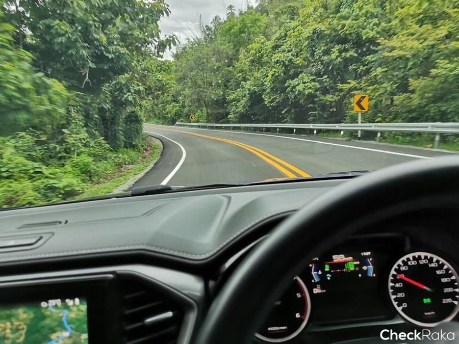 การเดินทางเริ่มจากดอนเมืองใช้ทางหลวงหมายเลข 1 พหลโยธิน จนมาถึงแยกเข้าสู่ถนนสายเอเชีย 32 ผ่านอยุธยา เส้นทางโดนควบคุมความเร็วไปตลอด จริงๆ ถนนสายหลักทั่วประเทศก็มีการคุมความเร็วด้วยกล้อง และด่านตรวจเป็นระยะเสมอ การวางแผนเผื่อเวลาการเดินทางจึงเป็นเรื่องจำเป็น การเดินทางในช่วงวันธรรมดารถไม่ถึงกับหนานแน่น ขับสบายๆ ใช้ความเร็วไปเรื่อยๆ บางช่วงก็เปิดระบบครูส คอนโทรล ช่วยเพื่อความสะดวกสบาย และสามารถจำกัดความเร็วได้โดยไม่ต้องระวัง ขุมพลังอีซูซุ 1.9 ดีดีไอ บลูเพาเวอร์ ให้กำลัง 150 แรงม้า ที่ 3,600 รอบต่อนาที แรงบิดสูงสุด 350 นิวตันเมตร ที่ 1,800-2,600 รอบต่อนาที ให้พลังที่ราบรื่นทุกจังหวะ ระบบเอนเตอร์เทนภายในรถสามารถเชื่อมต่อได้หลากหลาย ผู้เขียนใช้การเชื่อมผ่าน แอนดรอยด์ ออโต ผ่านสาย USB ที่สะดวกเพราะสามารถใช้ Google Map ได้ และใช้งานกับฟังก์ชันของตัวรถได้อย่างไม่มีปัญหา สามารถเลือกสั่งงานด้วยเสียงจากการกดปุ่มบนพวงมาลัย นอกจากนี้ก็ยังเล่นเพลงจากแอปฯ spotify พร้อมเลือกทัชบนหน้าจอในรถได้เลย ผู้เขียนและทีมงานใจจดจ่ออยู่กับแหล่งท่องเที่ยวที่วางไว้ในทริปนี้ ซึ่งหลายจุดไม่เคยไปมาก่อน จริงๆ คือ ส่วนใหญ่นั่นแหละ นับเป็นเรื่องแปลกที่พอมาตั้งใจหาข้อมูลการท่องเที่ยวแค่จังหวัดใกล้กรุงเทพฯ รัศมี 200 กม. ก็พบว่ามีที่ไม่เคยไปมากมาย จากอยุธยาผ่านอ่างทอง สิงห์บุรี ชัยนาท และเข้าอุทัยธานี แล้วมุ่งหน้าไปหุบป่าตาด สัมผัสถนนที่โอบล้อมด้วยขุนเขาที่เรียกกันว่า สวิสเซอร์แลนด์เมืองไทย แวะปีนเข้าถ้ำหุบป่าตาดสัมผัสบรรยากาศป่าดึกดำบรรพ์