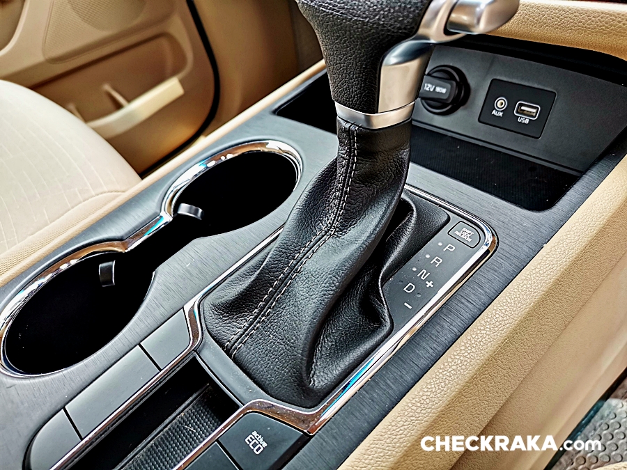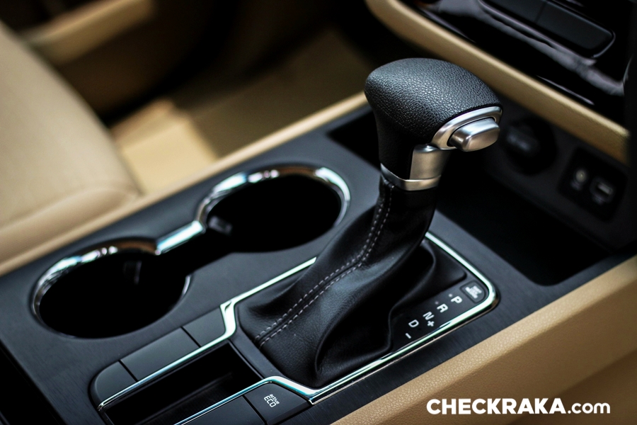 แผงควบคุมระบบปรับอากาศแบบสวิตช์มือหมุน โดยมีแถวบนควบคุมตอนหน้าและแถวล่างควบคุมตอนหลัง ในรุ่นนี้ยังไม่มีปุ่มควบคุมแอร์ติดตรงผู้โดยสารตอนหลังแยกมาให้ ด้านล่างเป็นจุดเชื่อมต่อ USB/AUX/DC12V ที่ฐานเกียร์เหมือนกับรุ่นสูงสุด โดยคันเกียร์สามารถโยกมาทางขวาเพื่อเลือกเปลี่ยนจังหวะได้เองแบบ บวก/ลบ ถัดลงมามีปุ่มเลือก Active Eco ไม่มีระบบเบรกมือไฟฟ้าและระบบเบรกชั่วคราวหรือ Brake Hold