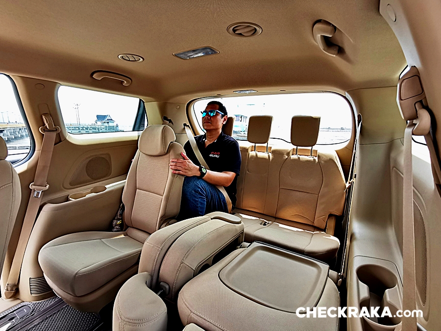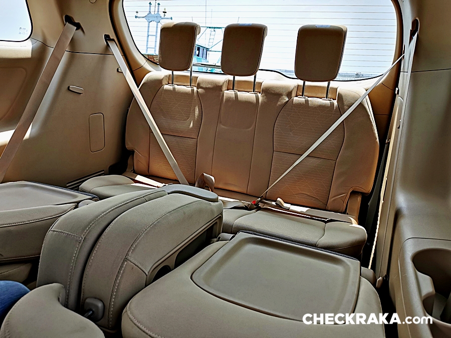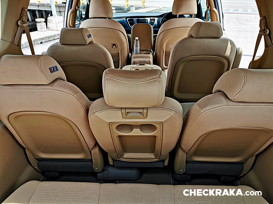 ในส่วนของผู้โดยสารแถวที่ 2, 3 สามารถปรับเลื่อนเบาะได้ทั้งหน้า-หลัง และเบาะกลางพับเป็นที่วางแก้วน้ำและยังพับเก็บได้เป็นช่องทางเดินได้ด้วย ส่วนเบาะแถวที่ 4 นั้น น่าจะเป็น "เบาะเสริม" เผื่อไว้สำหรับเด็กเล็ก ๆ หรือน้องหมาน้องแมวและสัมภาระอื่น ๆ แต่ถ้าผู้ใหญ่จำเป็นต้องนั่งก็พอที่จะปรับเลื่อนเบาะแถส 2 - 3 ให้มีพื้นที่สำหรับแถวที่ 4 ได้เช่นกัน แต่อาจจะต้องจอดแวะพักบ่อย ๆ หน่อย