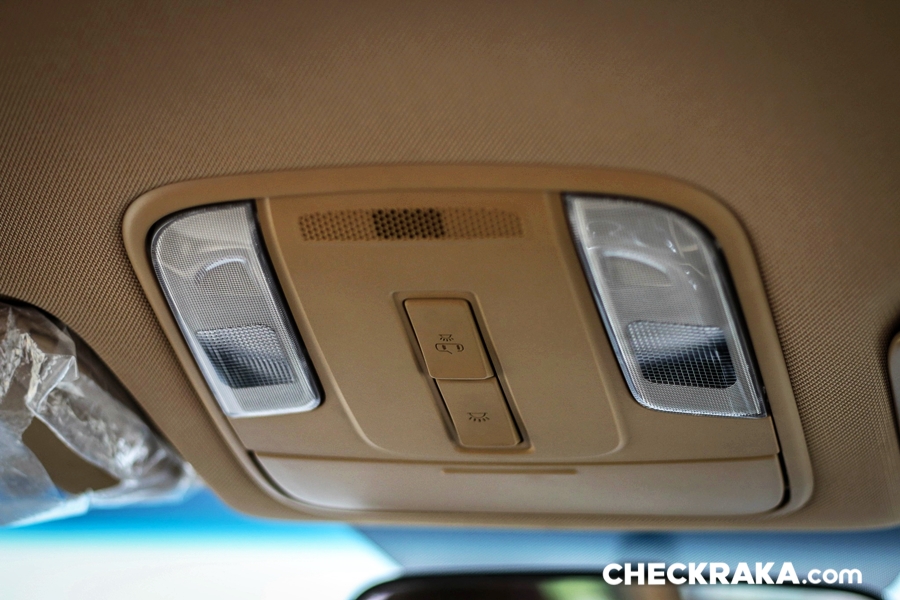 ที่บังแดดพร้อมกระจกส่องแต่ไม่มีไฟตรงจุดให้ แต่ก็พอใช้ไฟเก๋งตรงกลางอยู่ และยังสามารถดึงแผ่นกันแดดเล็ก ๆ ออกมาเพื่อปิดบังช่องระหว่างกระจกมองหลังได้อีกด้วยหรือเมื่อปรับมาใช้บังแดดด้านข้าง ส่วนตรงกลางมีชุดควบคุมไฟในรถและกระจกส่องคนนั่งหลังเอาไว้คุยแบบเห็นหน้าได้โดยไม่ต้องหันไปมองเพื่อความปลอดภัย