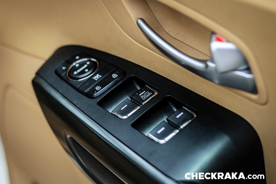ทางด้านฝั่งประตูคนขับมีสวิตช์กระจกมองข้างที่ปรับไฟฟ้าแต่ไม่มีระบบพับไฟฟ้า สวิตช์เปิดกระจกไฟฟ้าด้านคนขับแบบ Auto Down เท่านั้น ตอนขึ้นต้องดึงค้างเอาไว้ พร้อมด้วยสวิตช์สั่งการล็อค-ปลดล็อคประตูที่มีให้ทั้งฝั่งคนขับและข้างคนขับ