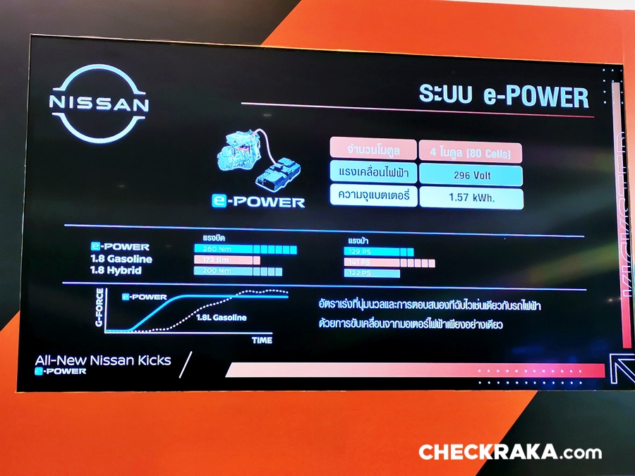 All-New Nissan KICKS รถยนต์ขับเคลื่อนด้วยไฟฟ้าล้วน ผสานเทคโนโลยี e-POWER มาพร้อมเครื่องยนต์ 1.2 ลิตร ใช้ปั่นไฟไม่ต้องเสียบปลั๊กชาร์จ เดินทางใกล้หรือไกลจะไปไหนก็ได้ทั่วประเทศ กับสมรรถนะที่เกินตัวด้วยกำลังมอเตอร์ไฟฟ้า 129 แรงม้า แรงบิด 260 นิวตันเมตร ที่มากกว่ารถเบนซิน 4 สูบระดับ 2.4 ลิตร คิดดูว่าแรงบิดระดับนี้อยู่ในรถไซต์อีโค่คาร์ จะขับสนุกและประหยัดแค่ไหนกัน?