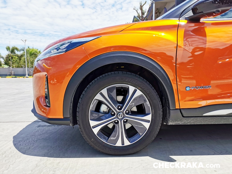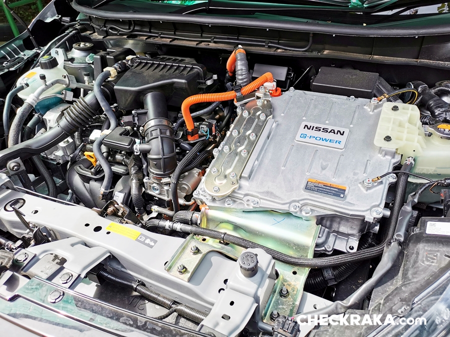 จุดเด่นน่าจะเป็นเรื่องของรถยนต์ที่ใช้พลังงานมอเตอร์ไฟฟ้า EM57 ในการขับเคลื่อนล้วนๆ แต่ไม่ต้องคอยชาร์จไฟจากที่บ้านหรือแวะตามห้างหาแท่นชาร์จ เพราะได้ติดตั้งเครื่องยนต์เบนซิน 3 สูบ 12 วาล์ว ขนาด 1.2 ลิตร กำลังสูงสุด 79 แรงม้า ที่ 6,000 รอบ/นาที แรงบิด 103 นิวตันเมตร ที่ 3,600 - 5,200 รอบ/นาที ความจุน้ำมัน 41 ลิตร ทำหน้าที่เป็นเครื่องกำเนิดไฟฟ้า (Generator), พร้อมด้วยชุดอินเวอร์เตอร์ โดยเครื่องยนต์สันดาปภายในกับเครื่องกำเนิดไฟฟ้าจะผลิตกระแสไฟฟ้าไปเก็บไว้ที่แบตเตอรี่แบบลิเธียม ไอออน (Lithium ion) มีขนาดกะทัดรัด และส่งผ่านไปยังมอเตอร์ไฟฟ้ากำลังสูงสุด 129 แรงม้า (PS) แรงบิดสูงสุด 260 นิวตันเมตร ตั้ง 500 - 3,008 รอบ/นาที เพื่อขับเคลื่อนล้อคู่หน้า และหากในภาวะต้องการกำลังเต็มที่ กระแสไฟที่ได้จากการปั่นก็จะสามารถจ่ายตรงสู่มอเตอร์ได้ทันทีอีกด้วย