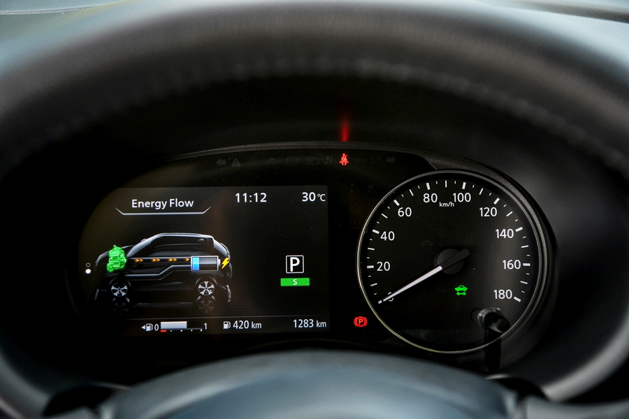 EV ใช้ไฟฟ้าจากแบตเตอรี่โดยเครื่องยนต์จะไม่ติดขึ้น จนกว่าไฟในแบตเตอรี่จะชลอลงในระดับต่ำตามที่กำหนดไว้ เครื่องยนต์ก็จะติดขึ้นมาเอง โดยทางนิสสันแจ้งไว้คร่าวๆ ว่า ในโหมด EV นี้จะวิ่งได้ระยะทางประมาณ 4 - 5 กม. ขึ้นอยู่กับสภาวะการขับขี่ในขณะนั้นครับ