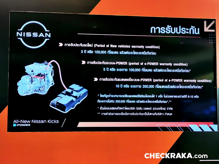 นอกจากนี้ นิสสัน คิกส์ มีการรับประกันตัวรถ 3 ปี 100,000 กม. แต่ในระบบ ePower รับประกัน 5 ปี พร้อมรับประกันแบตเตอรี่ 10 ปี และ ค่าบำรุงรักษายังเหมือนขับอีโค่คาร์อีกด้วย!!