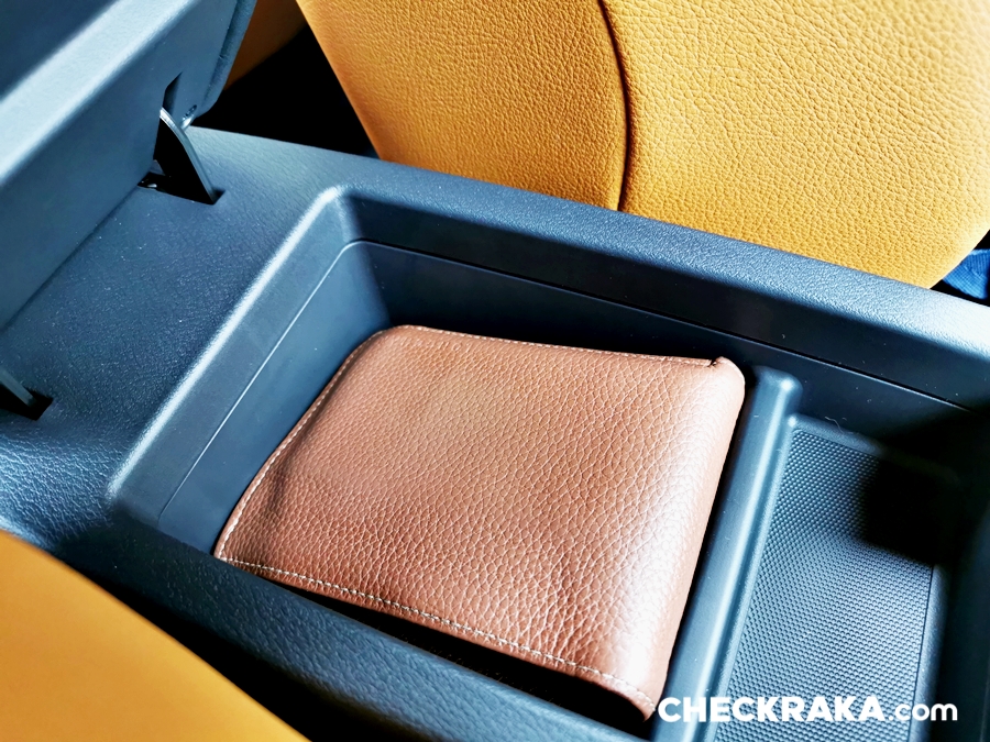 ตำแหน่งวางของกระจุกกระจิก วางแก้วน้ำมีน้อยไปสำหรับตอนหน้า มีแค่ตรงคอนโซลกลางและแผงข้างประตูที่วางขวดน้ำเล็ก ๆ จะหลวมและล้มบ่อยหน่อย แต่ชอบช่องเก็บของเล็ก ๆ ใต้แผ่นเท้าแขน สามารถใส่กระเป๋าสตางค์ผู้ชายได้พอดี