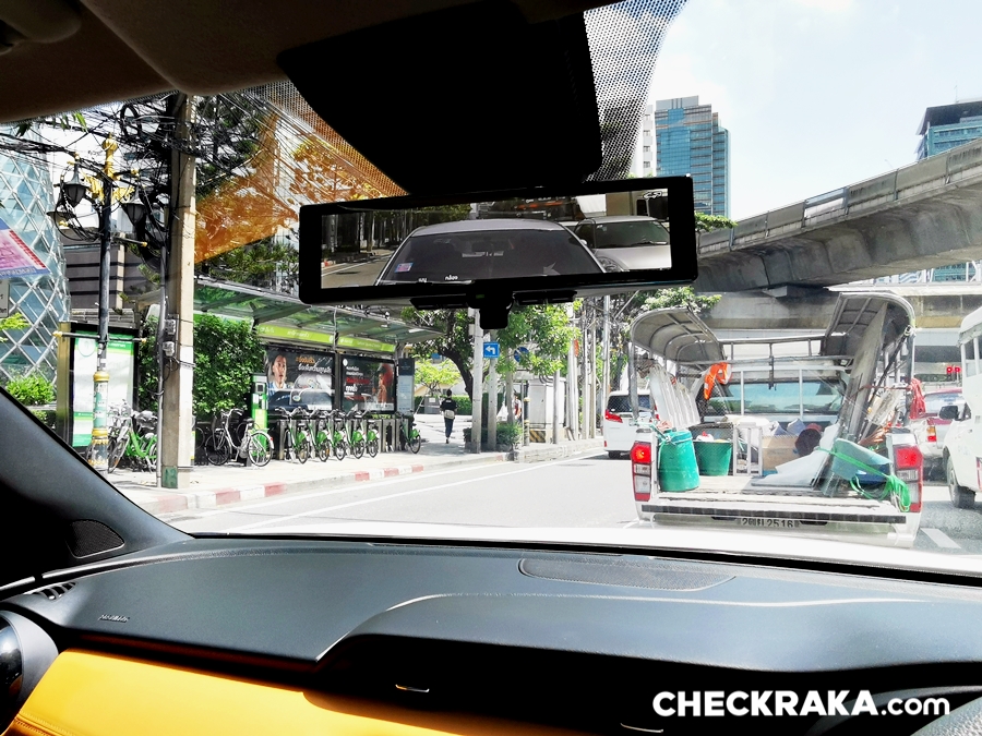 กระจกมองข้างที่มีกล้องนับว่าสะดวกเมื่อมีสัมภาระบดบังด้านหลัง แต่มุมมองของกลองจะไม่คุ้มเคย ระยะการมองเห็นค่อนข้างแตกต่างจากดูในกระจกเอง เพราะตำแหน่งกล้องติดอยู่ที่มุมบนกระจกบานหลัง ทำให้ระยะการมองเปลี่ยนไปบ้าง ต้องใช้งานบ่อย ๆ จึงจะชินครับ