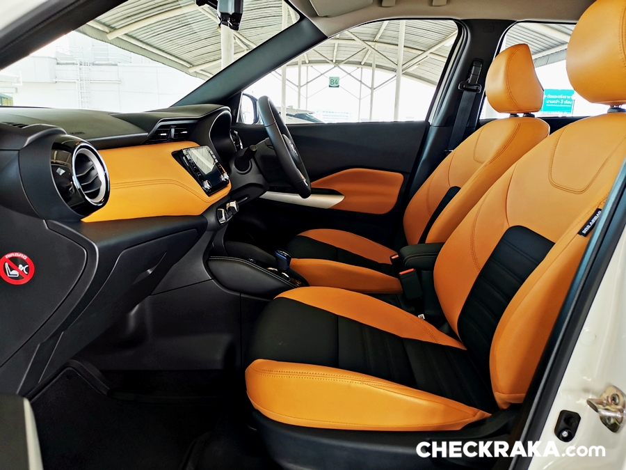 ภายนอกและภายในของนิสสัน คิกส์อาจไม่ค่อยมีอะไรโดดเด่นกว่ารถยนต์รุ่นอื่น ๆ นัก เพราะเป็นรถ SUV หรือ 5 ประตูยกสูงเหมือนกัน ส่วนภายในนั้นนับว่าแทบจะยกเอาของ นิสสัน อัลเมร่า เทอร์โบ ใหม่ มาใช้เกือบทุกจุด ในรถทดสอบคันนี้เป็นเบาะสีทูโทน ส้ม-ดำ เบาะคู่หน้าปรับมือฝั่งคนขับมีปรับสูงต่ำ