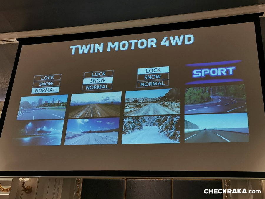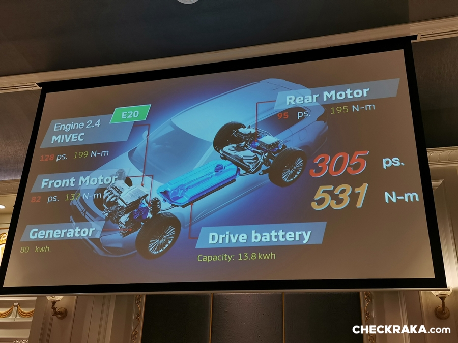 และโหมดการขับขี่ 3 รูปแบบ ได้แก่ โหมดอีวี (ขับเคลื่อนด้วยพลังงานไฟฟ้าเต็มรูปแบบ) โหมดซีรีย์ ไฮบริด (ขับเคลื่อนหลักด้วยมอเตอร์ไฟฟ้า โดยมีเครื่องยนต์ทำหน้าที่ผลิตกระแสไฟฟ้าให้แก่มอเตอร์ไฟฟ้าคู่) และ โหมดพาราเรล ไฮบริด (เครื่องยนต์และมอเตอร์ไฟฟ้าทำหน้าที่ขับเคลื่อนตัวรถไปพร้อมกัน)
