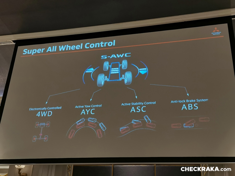 ส่วนมอเตอร์ไฟฟ้าชุดที่หมุนล้อหลังก็จะถูกคำนวนการออกแรงขับเคลื่อนระหว่างล้อและล้อหลังรวมเป็น 4WD หรือ S-AWC (Super-All Wheel Control) อีกทีหนึ่งนั่นคือ แรงขับเคลื่อนจากล้อหน้า 60% และล้อหลัง 40% เป็นต้น (ตัวเลขเป็นเพียงการยกตัวอย่างง่าย ๆ)