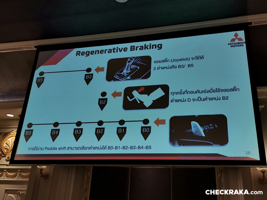 แต่สำหรับใน MITSUBISHI OUTLANDER PHEV แตกต่างกันออกไป เพราะเป็นรถยนต์ที่มีระบบขับเคลื่อนด้วยมอเตอร์ไฟฟ้าร่วมอยู่ จึงออกแบบให้มีฟังก์ชั่นพิเศษขึ้นมานั่นคือ "Regenerative Braking" หรือการชาร์จไฟกลับเข้าแบตเตอรี่ ซึ่งมีอยู่หลายตำแหน่งยิ่งเลขมากยิ่งเบรกหรือหน่วงความเร็วมากเท่านั้น เริ่มตั้งแต่ B0 - B5 ซึ่งยิ่งเลขมากก็ยิ่ง "รีเจนฯ" หรือชาร์จไฟมากตามไปด้วยครับ