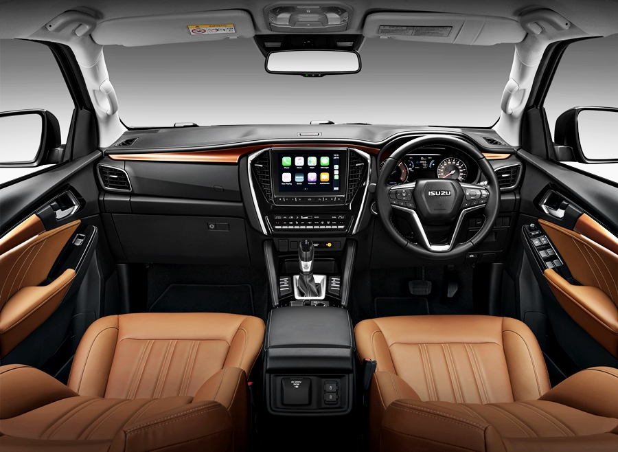 ระบบความบันเทิง ISUZU Ultimate Entertainment หน้าจอ Infotainment Display ขนาดใหญ่ 9 นิ้ว รองรับ Apple CarPlay แบบไร้สาย และ Android Auto (เฉพาะสมาร์ทโฟนรุ่นที่รองรับการใช้งาน) พร้อมลำโพง 8 จุด ให้มิติเสียงรอบทิศทาง รองรับการใช้งานอุปกรณ์ไฟฟ้าหลากหลาย USB Fast Charger ตรงคอนโซลกลาง 2 ตำแหน่ง
